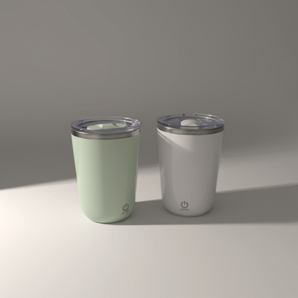Keep drinks hot or cold with this insulated mug in sage green and white. Features a splash-resistant lid, smooth matte finish, and minimalist style for Lebanese homes.