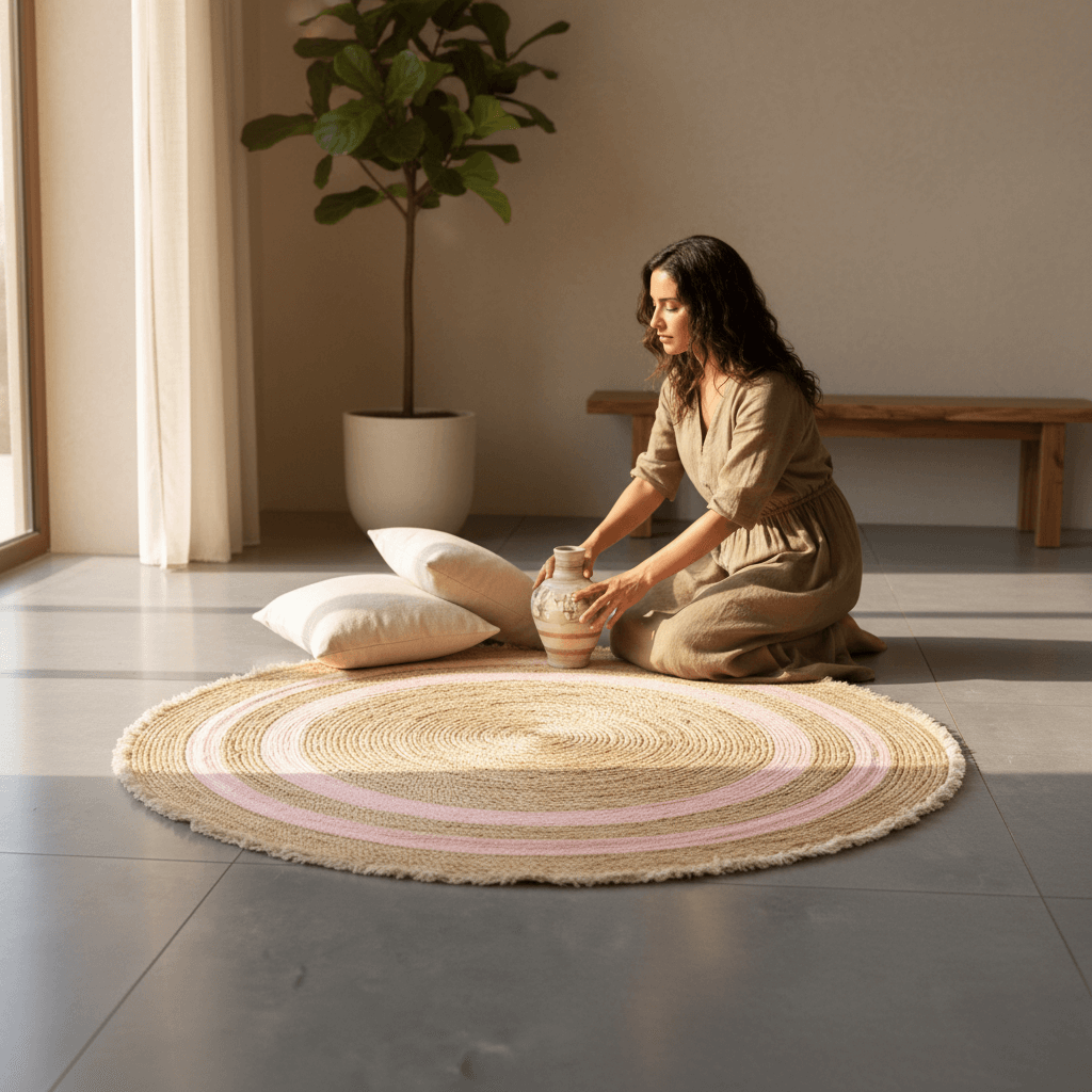 The round carpet pink adds a lively and contemporary accent to bedrooms, living rooms, or study spaces. Designed with Lebanese homes in mind, it fits perfectly in spaces seeking a touch of color without overwhelming the room.