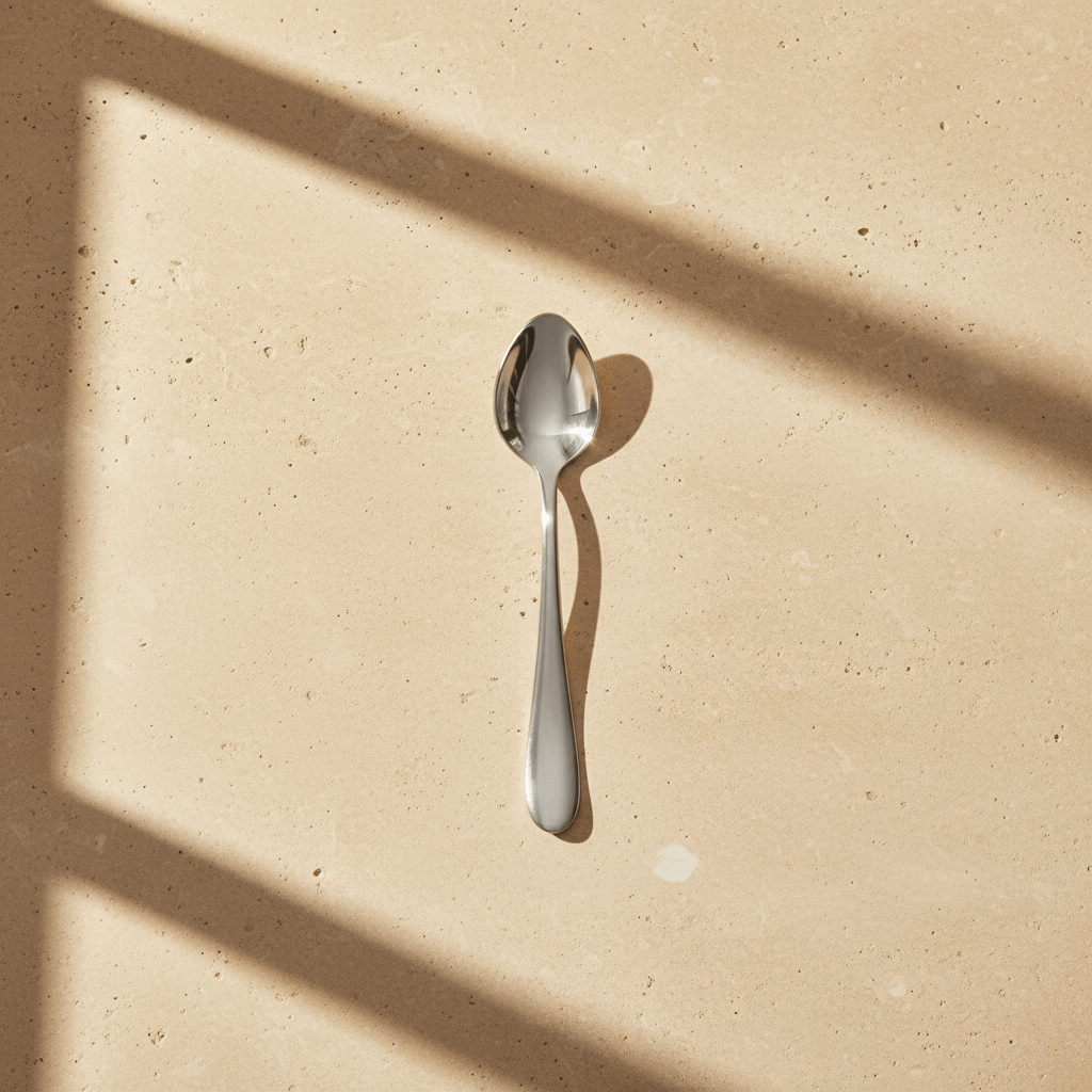 This 3 piece small pointed spoon set features a practical modern design in silver. Ideal for daily use in Lebanese homes, affordable and stylish.