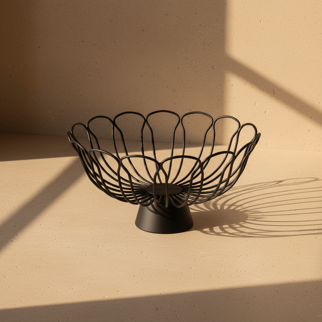This fruit basket with stand features a smooth, easy-clean surface and a minimalist aesthetic. The neutral black tone brings an elegant touch, complementing both classic and modern kitchens in Lebanese homes.