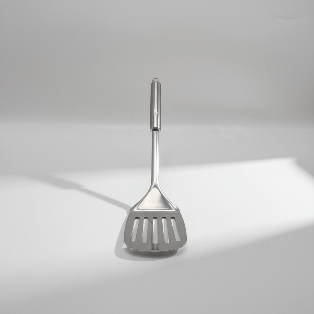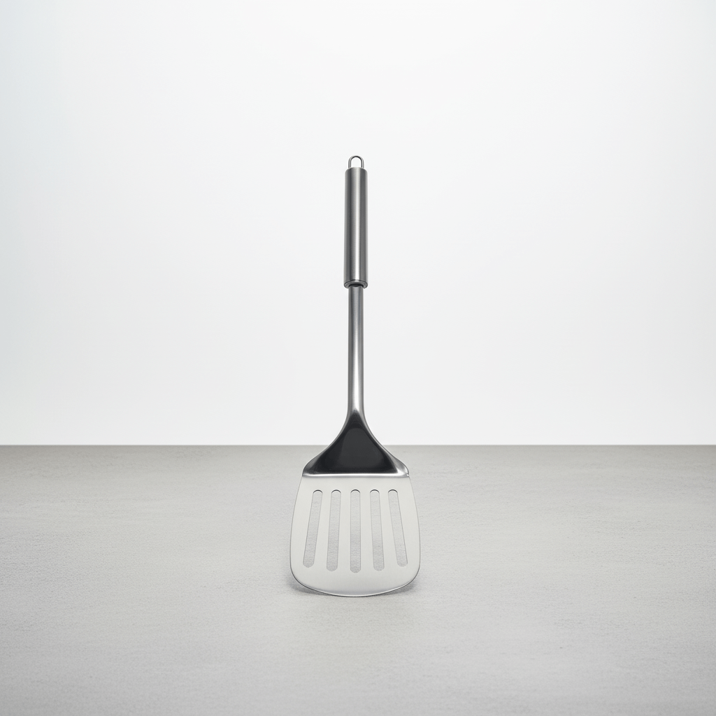 The slotted shovel’s smooth silver surface and rounded tube handle create a clean, polished look suitable for any kitchen. The flat head and slots are ideal for turning, draining, and serving a variety of foods without hassle.