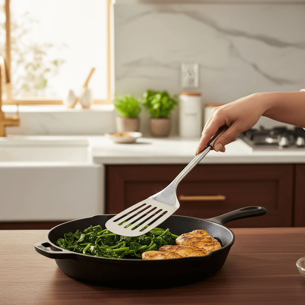The slotted shovel for cooking is an essential kitchen tool, perfect for flipping, lifting, and serving your favorite dishes with ease. Designed with both home cooks and busy Lebanese families in mind, it brings modern function and style to your cookware collection.