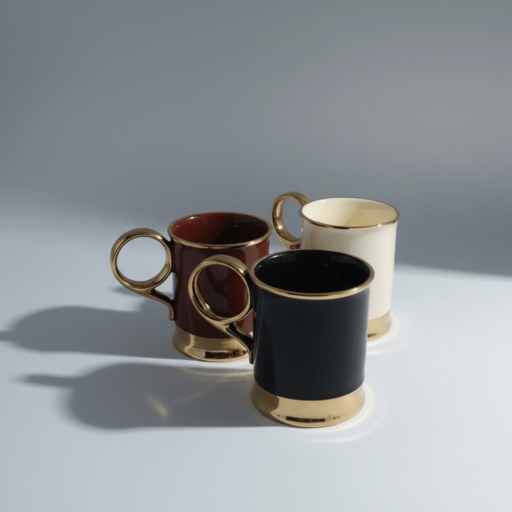 The black gold accent mug redefines sophistication for everyday coffee and tea lovers. Enjoy a premium drinking experience enhanced by refined design and eye-catching details. Crafted to complement both contemporary and classic Lebanese homes, this mug brings a sense of occasion to every sip.