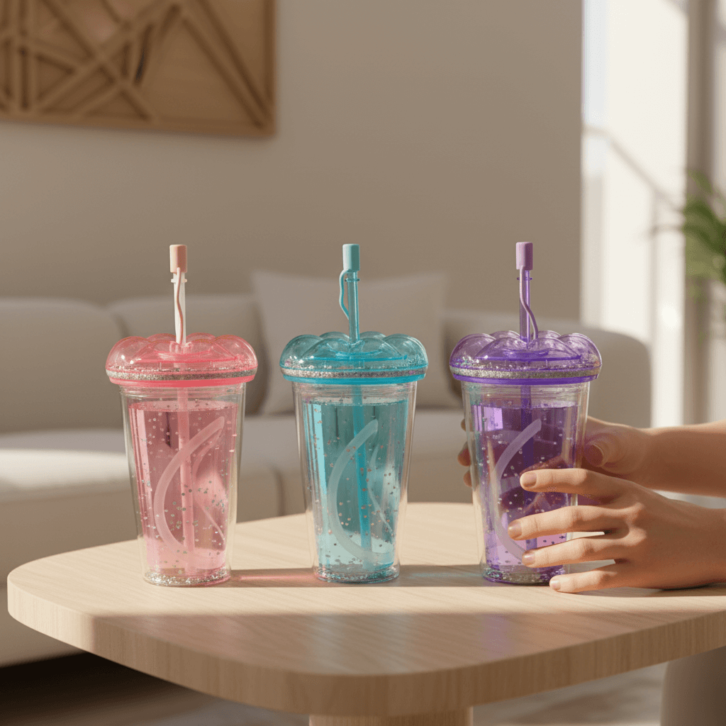 The aesthetic impact of this cup is undeniable. With its bright blue color and shimmering glitter, it brings playful energy to your table or desk. The pastel blue shade pops beautifully among other kitchenware or party settings. It’s especially compatible with the colorful tastes and lively homes of the Lebanese community, blending practicality with a youthful, modern vibe.