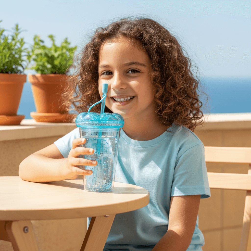 Bring fun and sparkle to every sip with this blue glitter water cup. Features a double-wall glitter design, matching straw, and lightweight build, ideal for Lebanese homes.