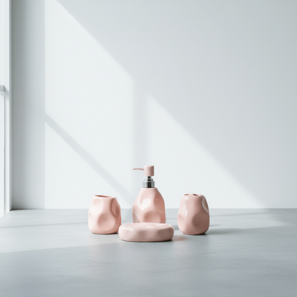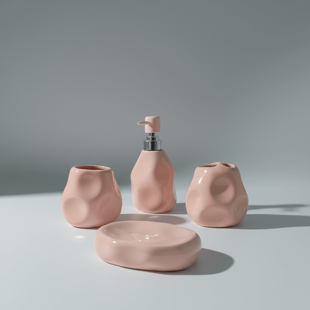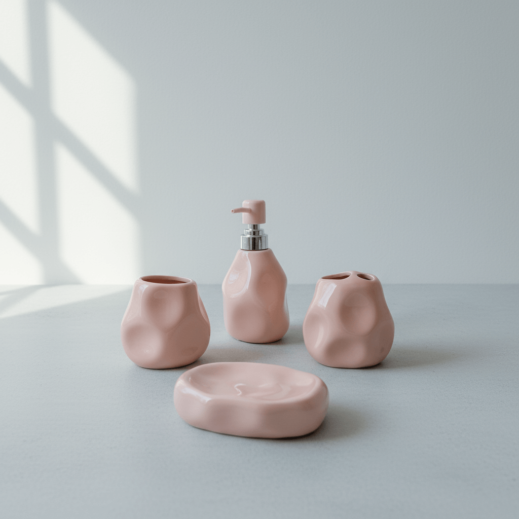 The blush pink bathroom set stands out with its artistic silhouette and pastel allure compared to ordinary, mass-produced designs. Its handcrafted appearance adds boutique charm and elevates any bathroom instantly. Choosing this set means choosing lasting visual joy and assured durability—a combination that adds value to any Lebanese home.