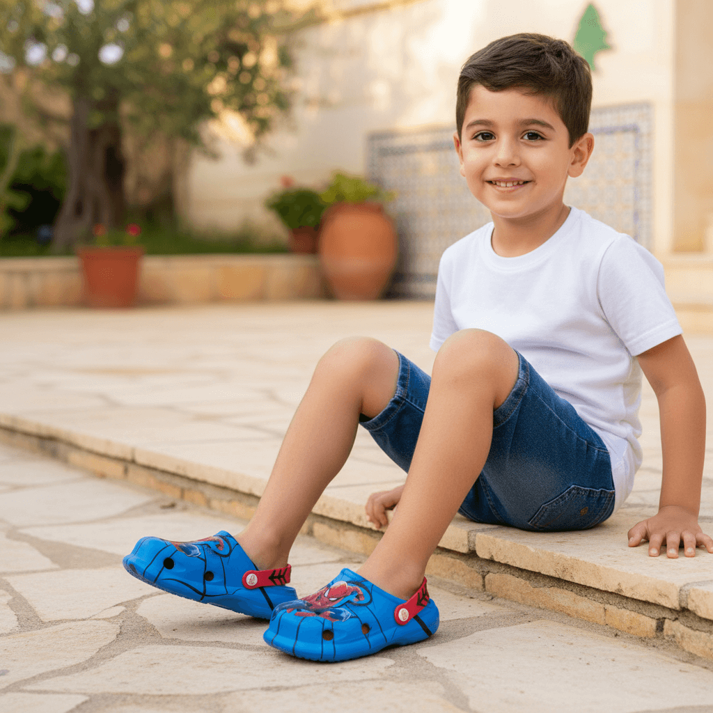 Step into adventure with these bright blue kids clogs. Features bold Spiderman graphics, lightweight comfort, and easy slip-on style perfect for active Lebanese homes.