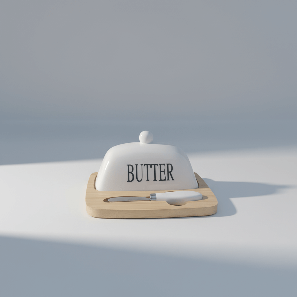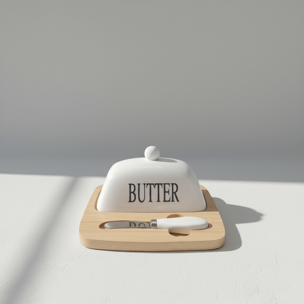 Upgrade breakfast with this cream butter dish set. Features bold “BUTTER” print, stable natural base, and smooth white-handled spreader—ideal for Lebanese homes.