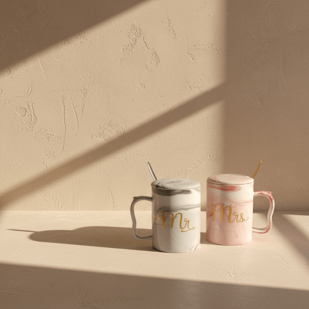 Elegant Marble Couple Mugs Set – Stunning Gift Duo