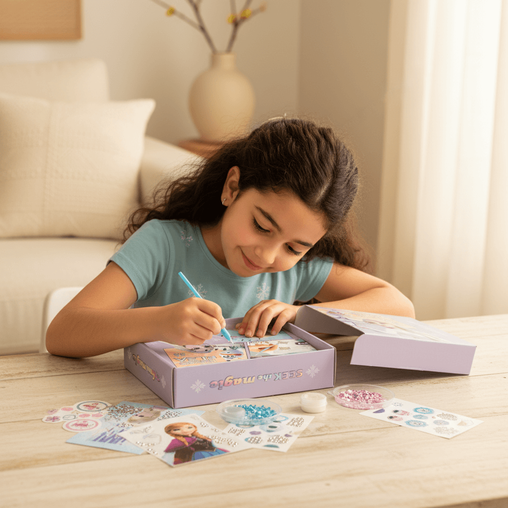 Designed to encourage creativity and independent play, this kit enables children to create dazzling Frozen scenes. All tools and diamond beads are included—just open the box and start crafting. Ideal for rainy days, family gatherings, parties, or quiet afternoons, it keeps kids happily engaged and away from screens. Clear steps in picture format ensure ease of use for even young crafters.