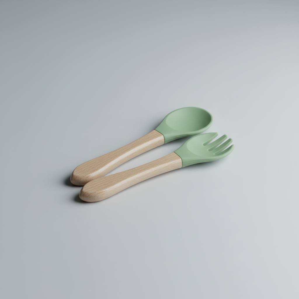 Each utensil features a soft-tipped, food-grade material at the eating end paired with a smooth, natural-finish handle for secure grip. Designed for active little hands, the set provides comfort and stability without compromising on visual appeal. Crafted to Mint LB standards for durability and long-lasting use in busy Lebanese households.