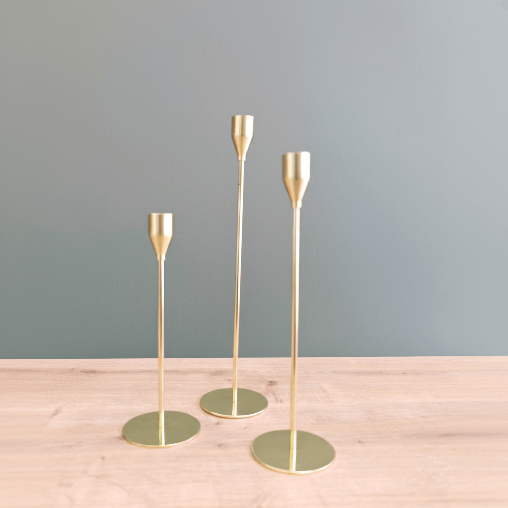 To use, simply place standard taper candles into the holders, ensuring a snug fit for stability. Arrange the holders together for a multidimensional decorative effect or space them throughout your room for uniform ambiance. For dinner parties, line them as a stunning centerpiece, or set beside your favorite ornaments for a personalized touch. For maximal impact, pair the black, gold, and white holders together to complement your decor palette.