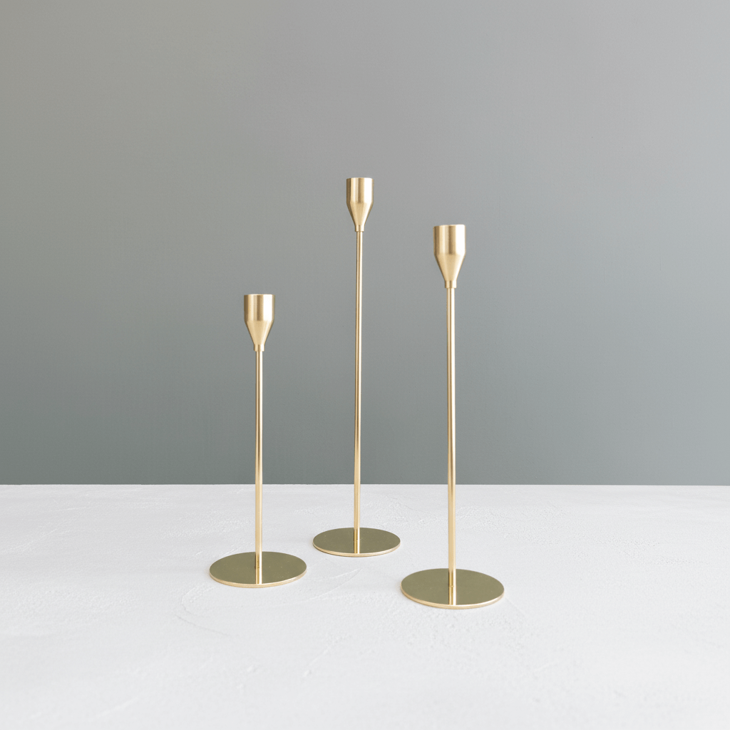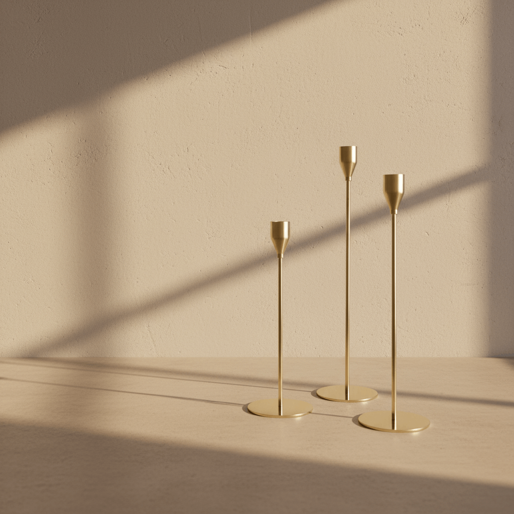 The modern candle holder set showcases minimalist, Scandinavian-inspired aesthetics with a choice of rich matte black, elegant brushed gold, and crisp matte white. Clean lines and harmonious proportions make these holders ideal for Lebanese homes with modern, minimalist, or transitional styles.