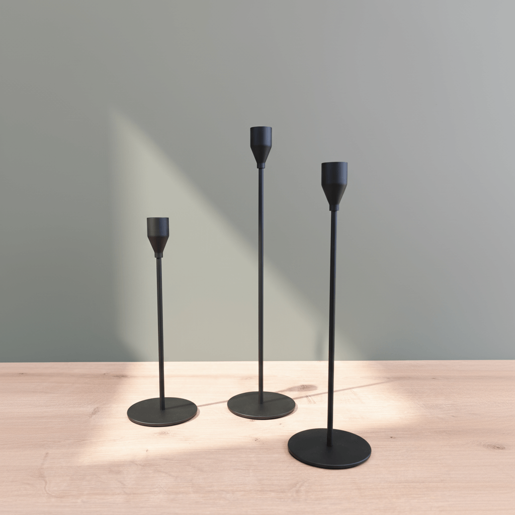 This modern candle holder set stands apart with its combination of vertical elegance and balanced minimalism. Unlike ornate or bulky designs, it offers effortless sophistication without overwhelming your space. The triple color palette ensures you always have an option to complement your living area, dining room, or as a gift. Discover how streamlined design can transform your table and enhance every occasion.