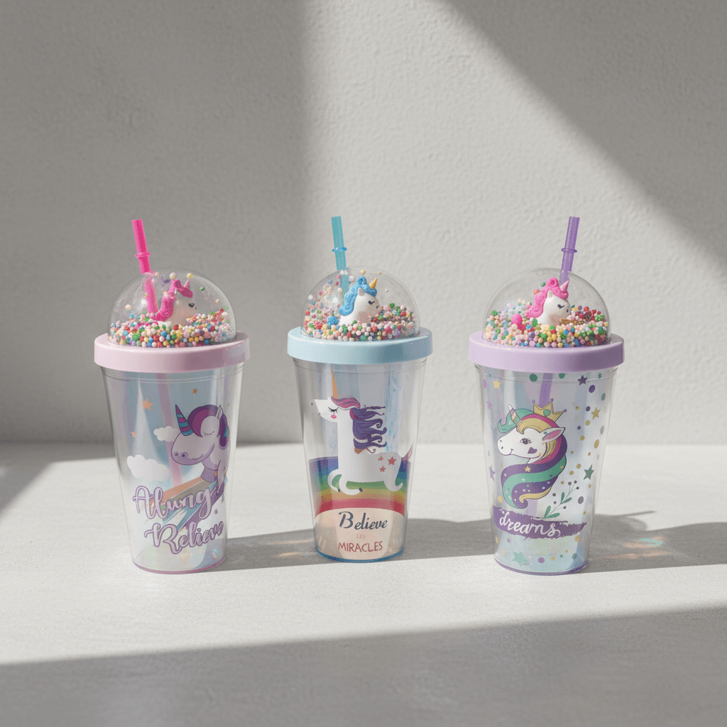 Add magic to every sip with this pastel unicorn kids cup. Features floating beads, dome lid, and reusable straw. Built for joyful moments in Lebanese homes.