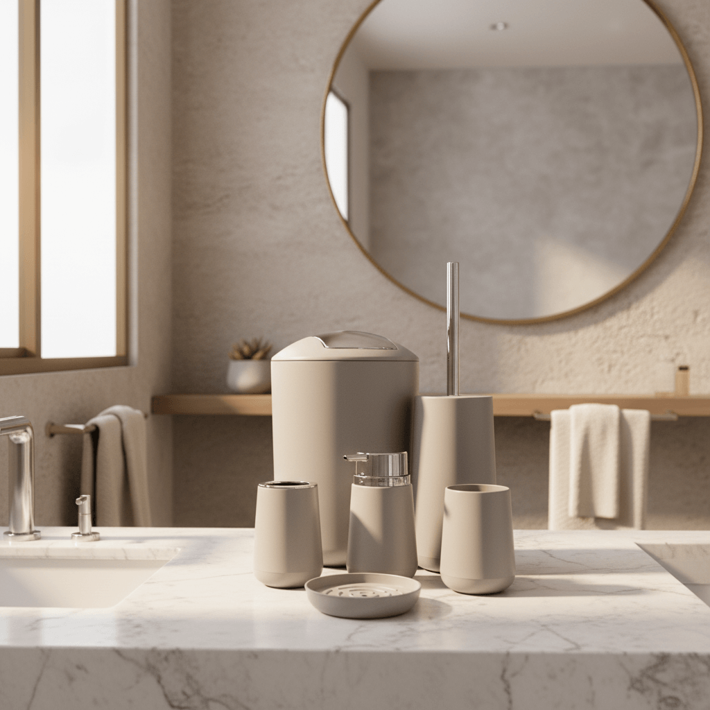 Every element of this gray bathroom set is designed for daily use and real family needs. The coordinated set typically includes a waste bin with a flip-top lid, a toilet brush holder with a sleek handle, a tumbler, a toothbrush holder, a soap dispenser with high-polish pump, and a soap dish. They are easy to clean, reposition, and refill—helping you keep your bathroom tidy and organized with minimal effort. Smart sizing ensures each piece fits well in both compact and spacious bathrooms.