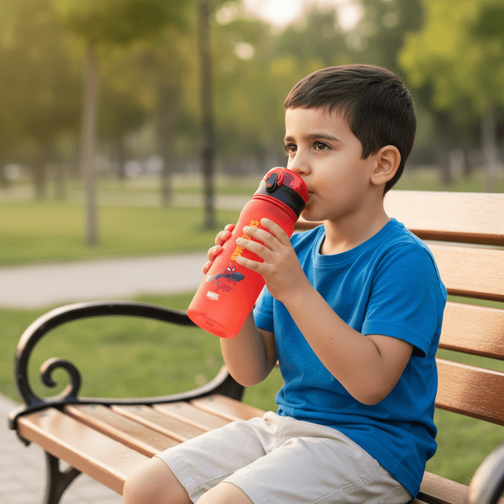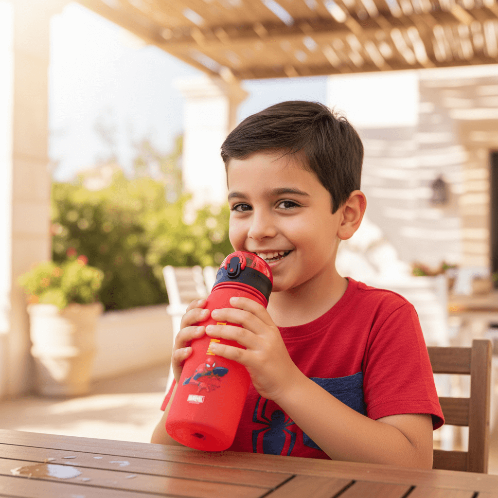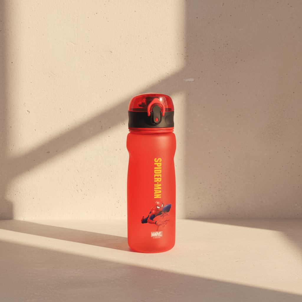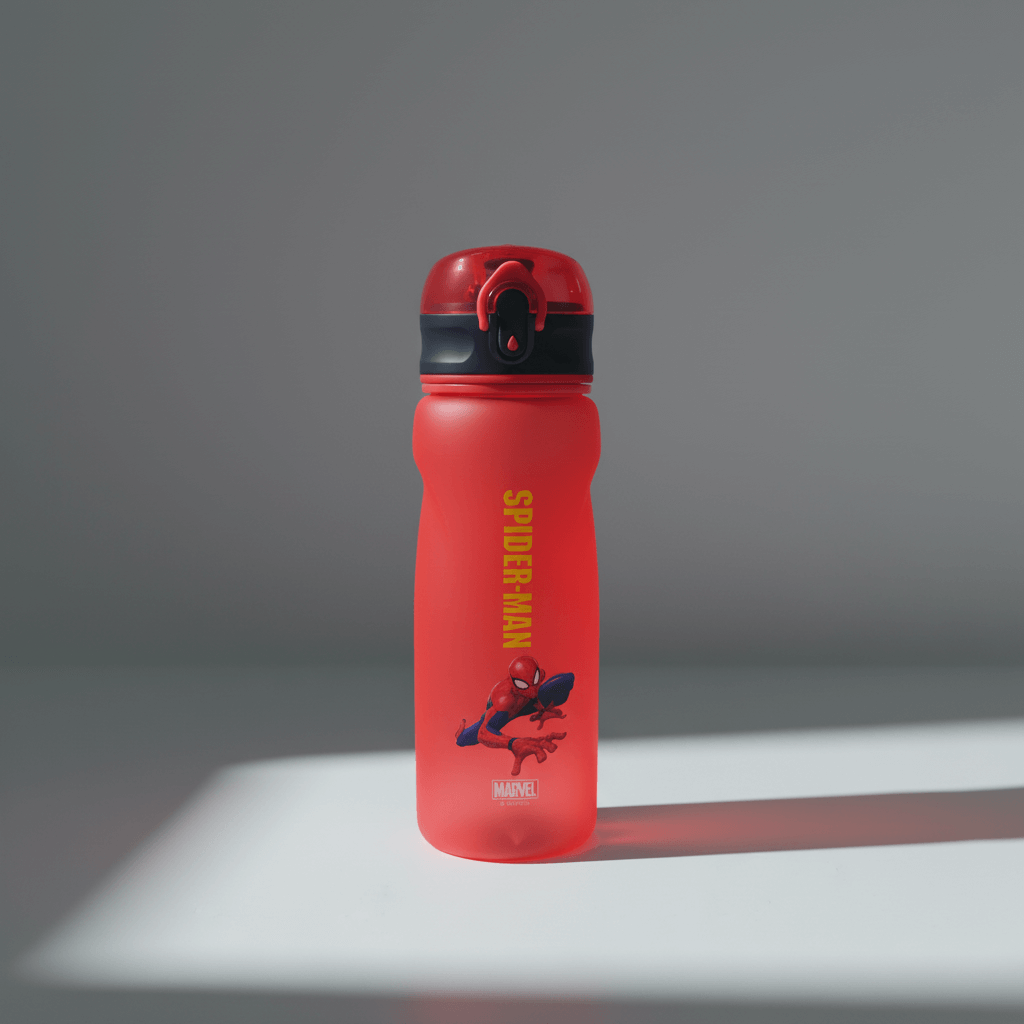 Immediately eye-catching, the bottle features a bold red shade accented with a contrasting black flip-top lid and a playful Spider-Man illustration. Its modern, playful design complements backpacks, lunchboxes, and family day bags, adding a burst of color to daily routines. Perfect for fitting seamlessly into Lebanese family lifestyles while standing out as a favorite accessory.