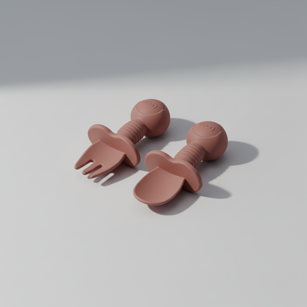 Introducing the Essential Silicone Baby Spoon & Fork Set