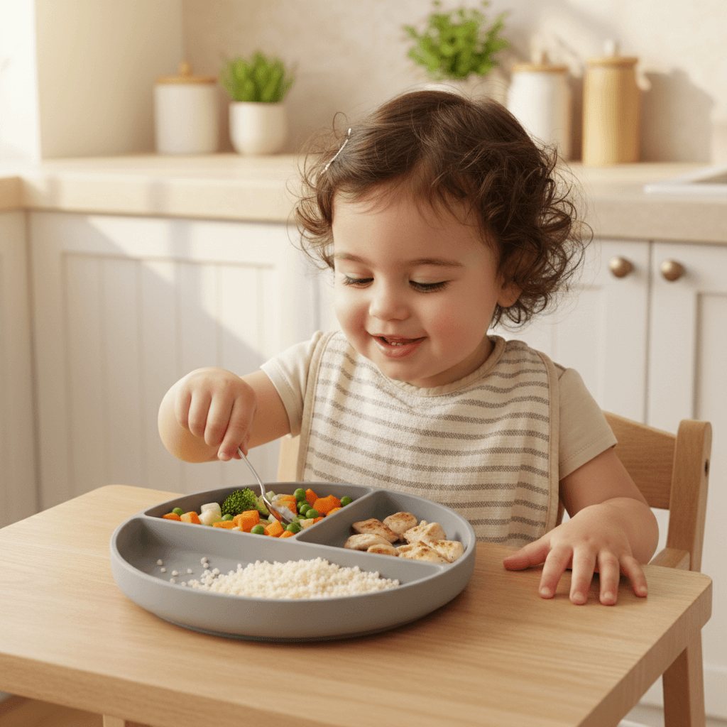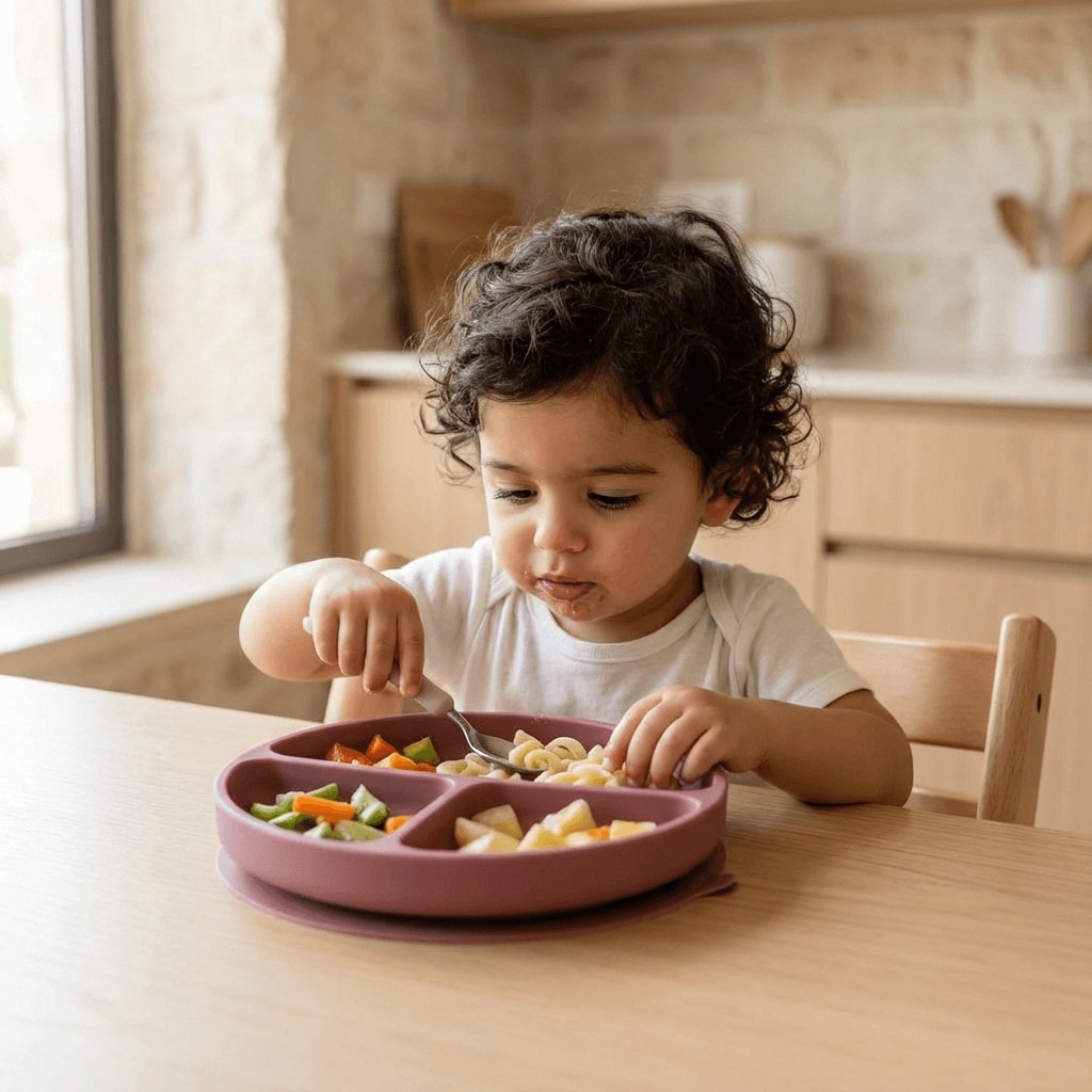 The sage green silicone baby plate is divided into three spacious compartments for easy portioning and variety—a proven way to encourage diverse eating habits in toddlers. Its non-slip base ensures the plate stays put, even during the most enthusiastic self-feeding sessions. Lightweight yet sturdy, it transitions seamlessly from high chair to family table. Microwave and dishwasher safe, it’s tailored for busy Lebanese parents needing practical, reliable solutions every day.