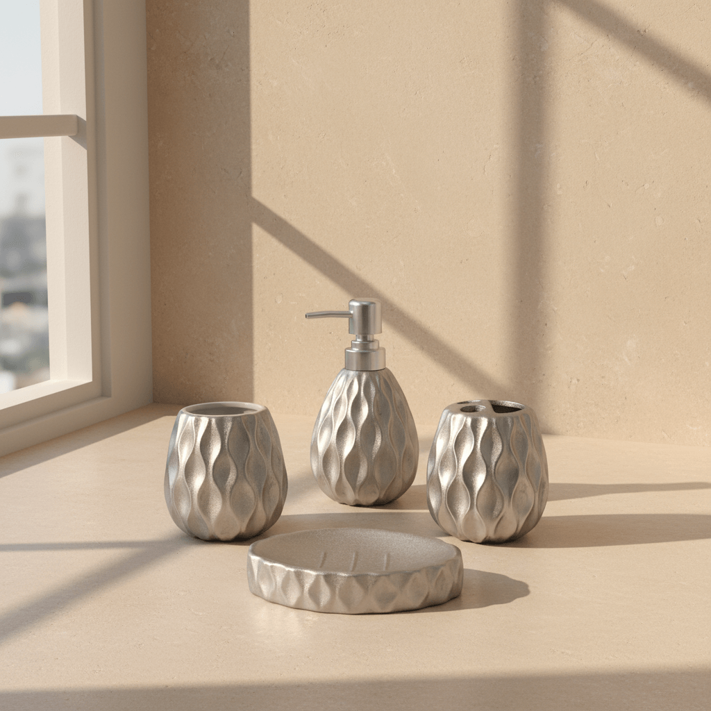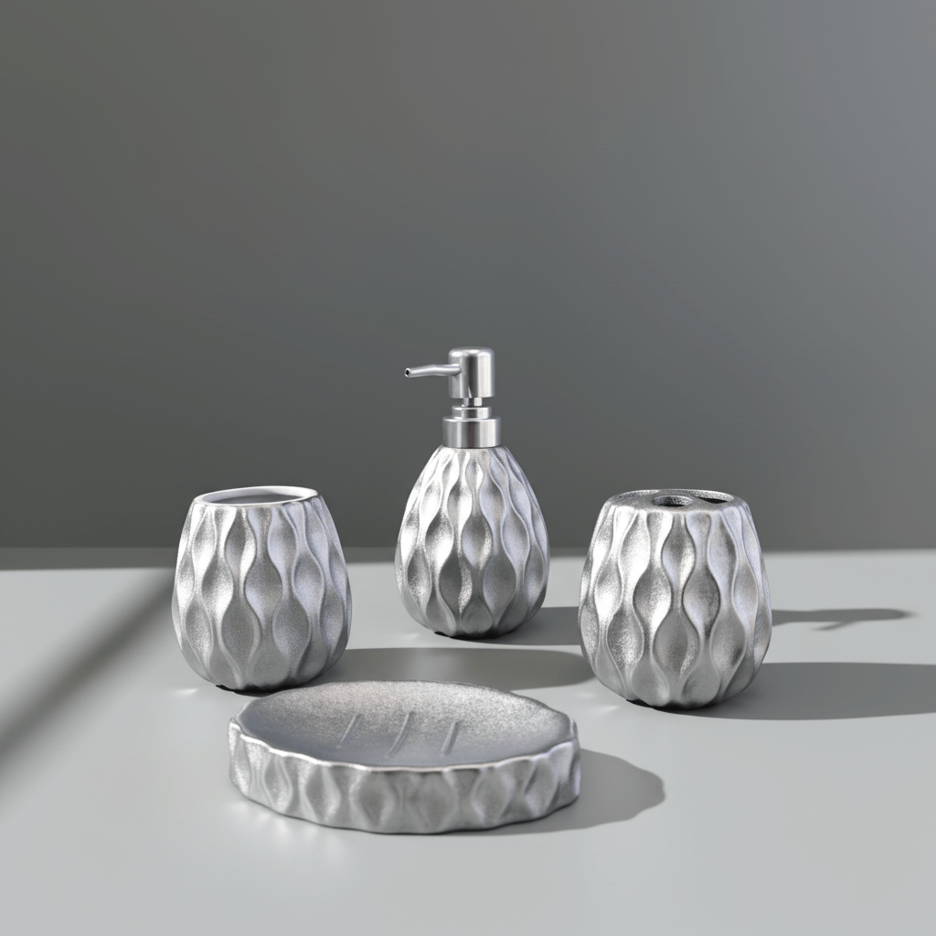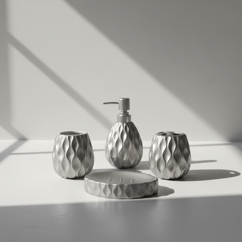 Premium Silver Sculpted Bathroom Set – Elegant Textured Finish