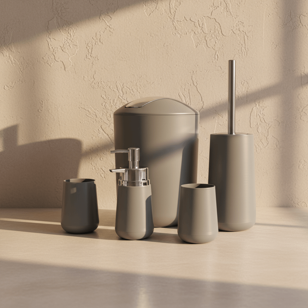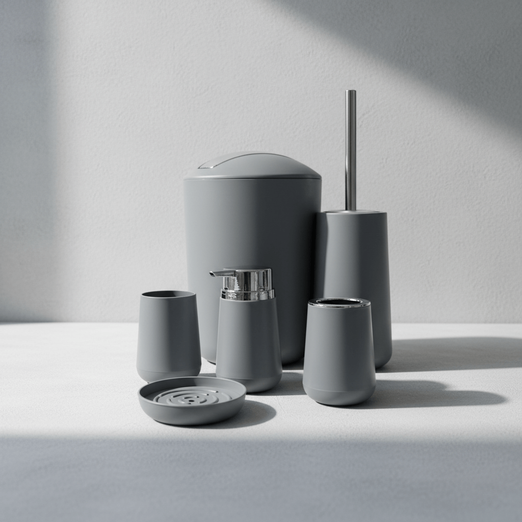 The slate grey bathroom set brings a sophisticated and harmonious upgrade to your bathroom. With six coordinated essentials in a calm slate grey, this set gives your space a fresh, contemporary feel. Thoughtfully designed for Lebanese families, it offers everyday practicality fused with modern elegance.